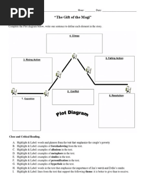 Please note that some students might find it helpful to refer to a narrative plot structure diagram for the definitions of each element to help them complete the worksheet. Either independently or as a class, students will read the included short story "The Gift of the Magi", paying close attention to the plot's: Exposition. Rising action ...