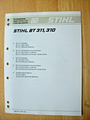 Stihl 011 Chainsaw (011AVTEQ) Parts Diagram Select a page from the Stihl 011 Chainsaw diagram to view the parts list and exploded view diagram. All parts that fit a 011 Chainsaw . Pages in this diagram. A_-Crankcase. A-Crankcase. B_-Cylinder. B-Cylinder. C_-Air filter. C-Air filter. D_-Clutch. Stihl Br 600 Backpack Blower Br 600 Parts Diagram Fuel Tank Stihl Br 600 Parts Diagram, Stihl Br 600 Blower Parts Diagram Awesome Pictures Carburetor Choke Transnet freight rail tender notices can be down loaded in pdf format from the transnet freight rail website free of charge printed and viewed. Name. Diyspareparts. ea 1111-148-4001 strap $ 4. Stihl MS 311 | Parts Diagram - Page 21 Drawing L Tools, Extras MS 311, MS 391 21 SCS 01-2010 3.29 1110 893 4000 Qty Description 1 Tool kit (B) ☐ 1 - 4 1 Combination wrench 1 Screwdriver T27x120x70 (B) 1 Screwdriver 1 Tool roll (B) 1 Chain scabbard 1 Chain scabbard extension up to 63 cm (B) 1 Filing gauge (B) (1) MS 311, (2) MS 311-Z, (3) MS ... Stihl MS 311 Chainsaw (MS311) Parts Diagram Select a page from the Stihl MS 311 Chainsaw diagram to view the parts list and exploded view diagram. All parts that fit a MS 311 Chainsaw . Pages in this diagram. AV system. Carburetor bracket. Carburetor WTE-9. Cylinder. Engine housing. Hand guard. Ignition system. Oil Pump.