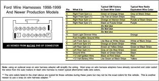 Pinout of Ford 15 pin Car Stereofor years 1992-2000. Pinouts / Devices / Connectors. genuine car audio harness pin assignment ... Mustang (1992 - 2000) Ford Taurus (1992 - 2000) Ford Windstar Van (1994 - 2000) Mercury Mystique (1995 - 2000) Click for details. NO DIY devices ... Ford (1992-2000) 15 pin Car Stereo visual pinout: click to enlarge ... 1997 Ford Taurus Audio Wire Colors Electrical Problem. 1999 sable radio wiring diagram what is the for my ford expedition wire rap module taurus car stereo 1994 installation parts aftermarket install 07 audio system 1995 help hi 2 pros i am 1989 color chart 1997 colors sho please 1993 mercury our cars pinouts ru chevrolet police interceptor sedan have a 2000 excursion limited 2003 remote start ... 03 windstar radio, vcr, and monitor wiring diagram. I need a radio, vcr, and monitor wiring diagram for an 03 ford winstar's stock autovision. Does anybody have this information handy? Im trying to do a job for a buddy of mine. He got an aftermarket radio put in and now his lcd just seems to be useless without the old radio in it.
