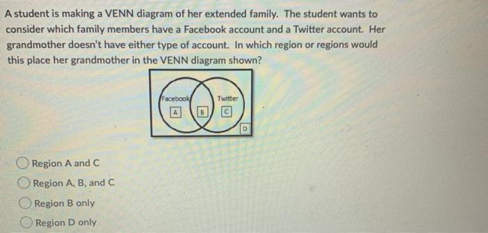 A student who is studying atomic reactions creates the following Venn diagram. Circle 1: Reaction A -Involves Reactions-Happens outside atomic nucleus -Releases relatively small amounts of energy Circle 2: Reaction B-Involves neutrons-Happens inside atomic nucleus-Releases relatively large amounts of energy A student who is studying atomic reactions creates the following Venn diagram. Reaction A - Involves electrons-Happens outside atomic nucleus - Releases relatively small amounts of energy. Reaction b - Involves neutrons - Happens inside atomic nucleus - Releases relatively large amounts of energy As a busy student, you might end up forgetting some of the assignments assigned to you until a night or a day before they are due. This might be very stressing due to inadequate time to do a thorough research to come up with a quality paper. Achiever Papers is here to save you from all this stress. Let our professional writers handle your assignments and submit them to you no matter how close ... 4. VENN DIAGRAM: A class has 175 students. The following is the description of students studying one or more of the following subjects in this class: Mathematics: 100 Physics: 70 Chemistry: 46 Mathematics and Physics: 30 Mathematics and Chemistry: 28 Physics and Chemistry: 23 Mathematics, Physics, and Chemistry: 18 a. How many students are enrolled in Mathematics alone?