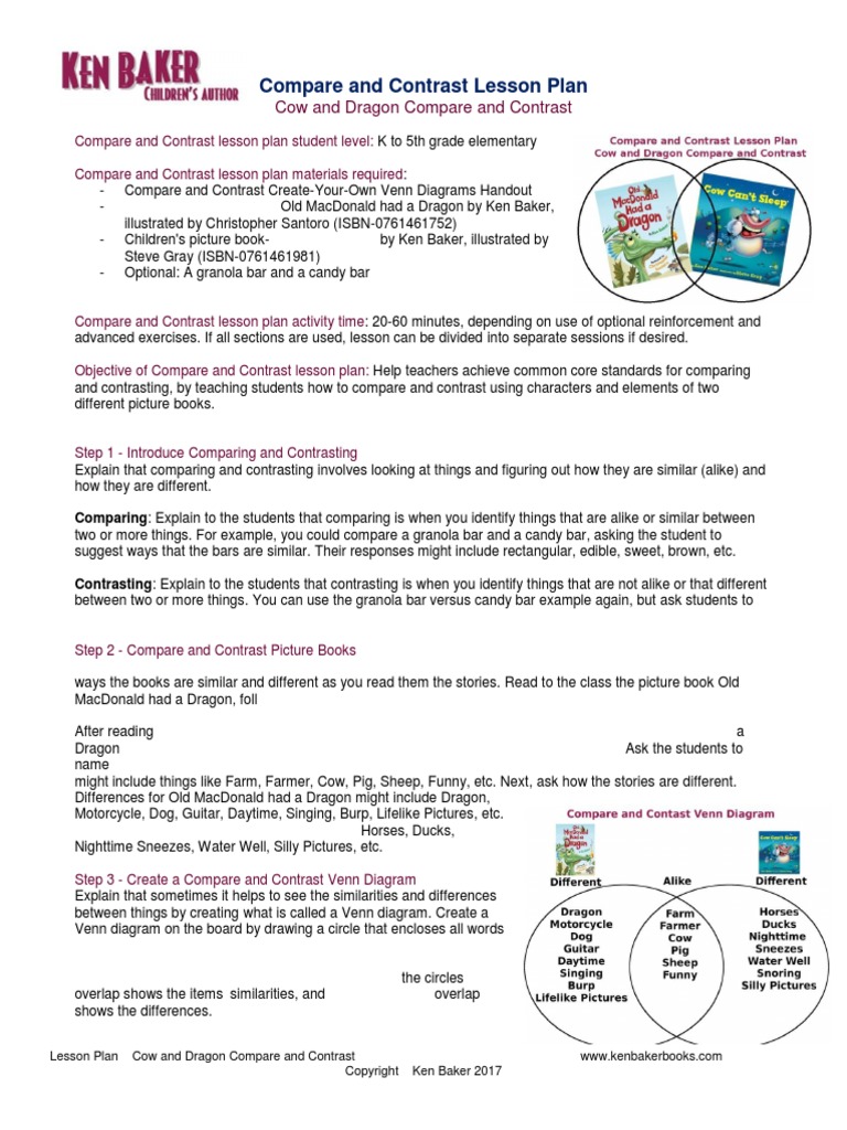Venn diagram lesson plan. Provide students with an example of a completed Venn diagram, comparing and contrasting two simple objects such as apples and oranges. Intermediate. Define "topic," "genre," "compare," and "contrast" in student-friendly terms, and in students' home languages, if applicable. Show students real collages or pictures of collages on the internet. Components of a Well‐Written Lesson Plan 1. ... able to place six specific characteristics into a Venn diagram of the similarities and differences of ... direct Instruction could include reading a book, displaying diagrams, showing real‐life examples of ... Manage the Lesson: Step 1: Launch the lesson with Real Number System Notes (convert to a powerpoint). Use the Venn diagram to develop the vocabulary and assist students in the categorization of numerical examples. Step 2: In order to create this foldable, each student will need 3 sheets of paper (different colors, if available). ESOL Lesson Plan ( Venn Diagram) Use Creately's easy online diagram editor to edit this diagram, collaborate with others and export results to multiple image formats. We were unable to load the diagram. You can edit this template and create your own diagram. Creately diagrams can be exported and added to Word, PPT (powerpoint), Excel, Visio ...