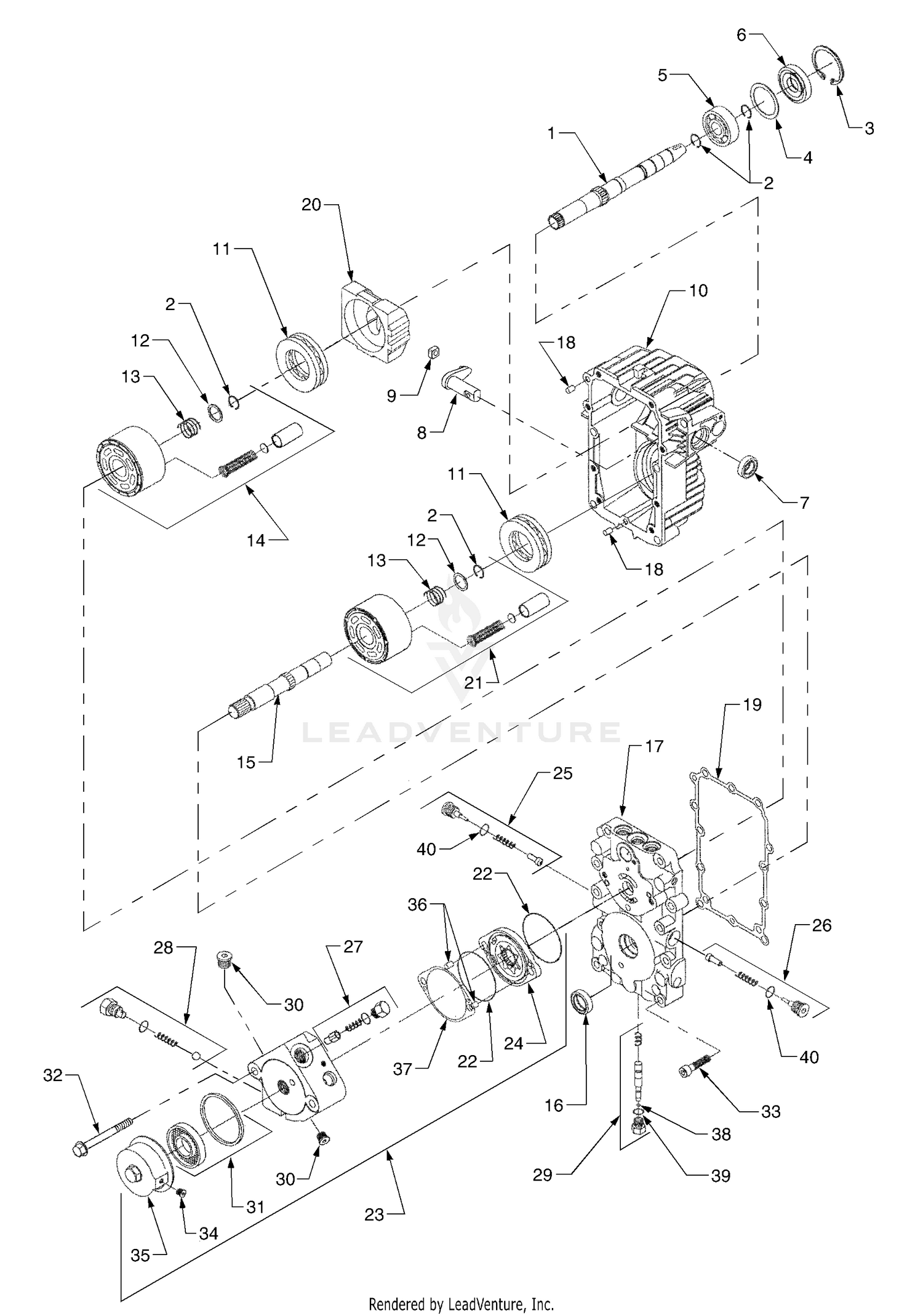 Hydrostatic Transmission diagram and repair parts lookup for Cub Cadet 107 (2050038U) - Cub Cadet Garden Tractor