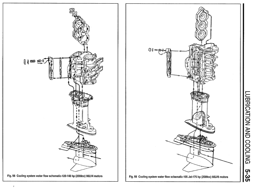 Johnson outboard cooling system diagram. Cooling related links. Water is inducted through the lower unit by a water pump impeller and then forced upward to circulate throughout the powerhead and eventually exits through the exhaust system. Domestic on line orders shipping and handling usps air for 895 regardless of size.
