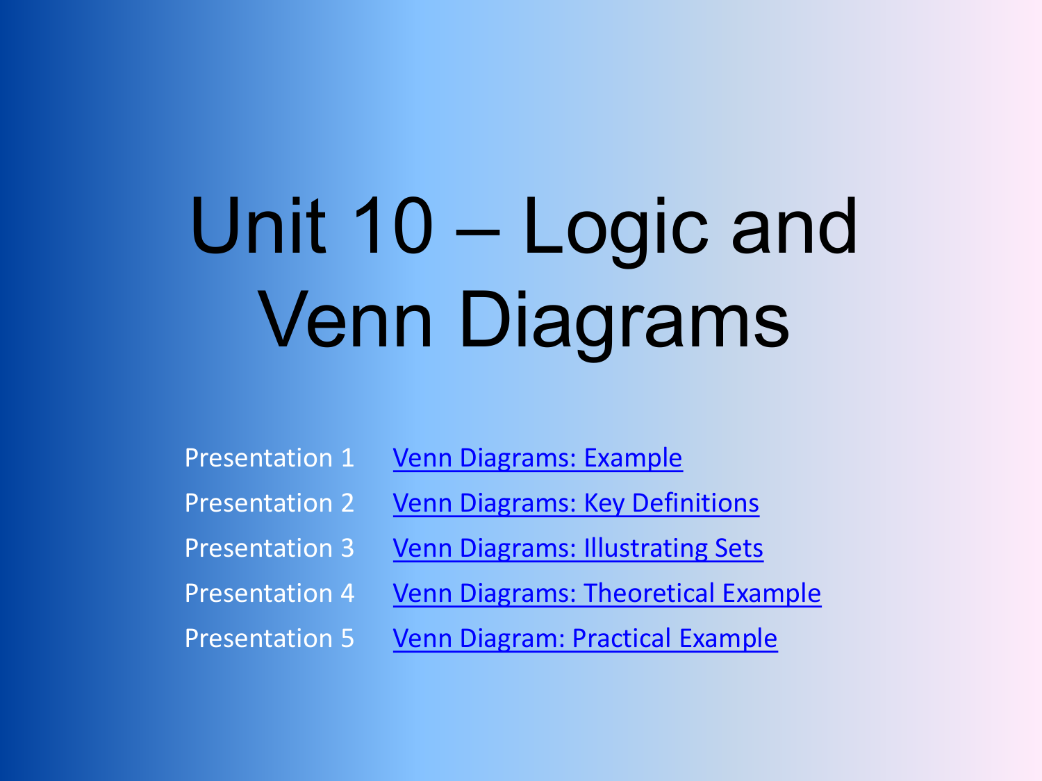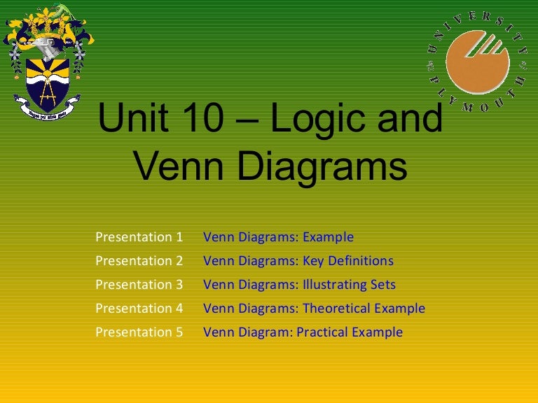 Deductive Logic and Venn Diagrams . Deduction and Validity. Before getting to Venn Diagrams we should simply review here some basic points about deductive arguments generally and validity in particular. Deductive arguments are arguments wherein the conclusion is necessarily true (assuming true premises and a valid form). Venn diagrams are visual representations of mathematical sets—or collections of objects—that are studied using a branch of logic called set theory. Set theory is one of the foundational systems for mathematics, and it helped to develop our modern understanding of infinity and real numbers. Venn Diagrams Logic, Example, Questions and Video. The main aim of such questions is to test the ability of the candidates about the relation between some items of a group by diagrams. In such questions some figure of circle and some words are given. The candidate is to choose a figure which represents the given words. Abstract: The Venn Diagram technique is shown for typical as well as unusual syllogisms. The problem of existential import is introduced by means of these diagrams. I. One good method to test quickly syllogisms is the Venn Diagram technique. This class assumes you are already familiar with diagramming categorical propositions.