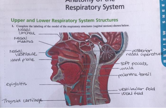 Upper and lower Respiratory System Structures. 1. Complete the labeling of the diagram of the upper respiratory structures (sagittal section).4 pages