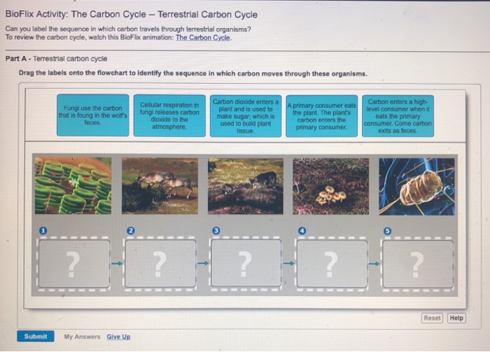 To review the carbon cycle, watch this BioFlix animation: The Carbon Cycle Part A Carbon cycle diagram Drag the labels onto this diagram of the carbon cycle.