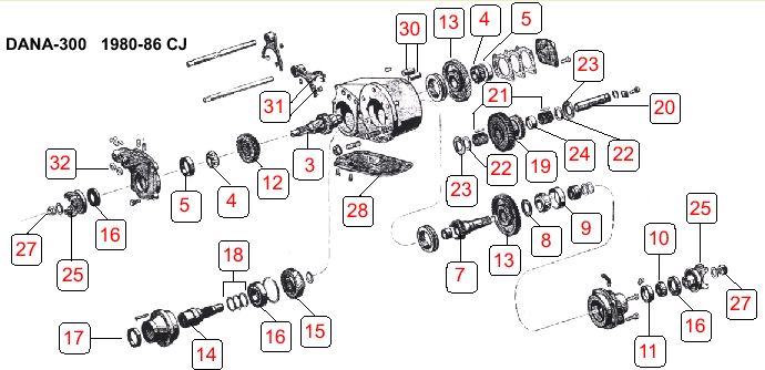 Dana 20 transfer case diagram. Both units were very popular in the mid-1960s, but it wasn't until the introduction of the Dana Spicer Model 20 transfer case in 1972 that production quantities started to recede. The Warn and Husky overdrives were no longer compatible. Both companies stopped production, and the availability of spare parts became very scarce by the mid-1970s. Advance Adapters purchased the tooling, engineering ... The Dana Model 20 transfer case makes for an enjoyable and satisfying rebuild project. Individuals can obtain outstanding results with some information, good parts, and pride in their work. A non-leaking, quiet and cooler running Dana 20 can be acheived with modern bearings, better seals and gaskets, improved lubricating fluids and a specially ... Part #: 946785. Gear, Mainshaft. Dana 20 Transfer Case Vintage. Fits. 1962-1978 Jeep SJ, J-Series w/ gear stamped. 1966-1971 Jeep C101 Commando w/ automatic transmission. 1972-1973 Jeep C104 Commando w/ automatic transmission. Availability: Quantity: 1962-1979 Jeep J-Series w/ Dana 20 transfer case. 1966-1971 Jeep C101 Commando w/ Dana 20 transfer case. 1972-1973 Jeep C104 Commando w/ Dana 20 transfer case. 1980-1983 Jeep CJ5 w/ Dana 300 transfer case. 1980-1986 Jeep CJ7 w/ Dana 300 transfer case. 1981-1986 Jeep CJ8 Scrambler w/ Dana 300 transfer case.
