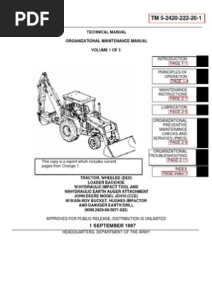 John Deere 410 Loader Backhoe Tractor Service Manual - Bookmarked, Indexed, Hyperlinked & Searchable. Serial Numbers: 235786 - 235999 & 319995 - 342573 Wain Roy Bucket, Hughes Impactor, & Danuser Earth Drill Auger NSN: 2420-00-567-1035 / 005671035 The manual details how to maintain, repair and replace all assemblies and the following core components: - Safety … Continue reading "John ...