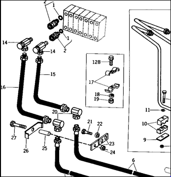 Tractor. John Deere 410 Backhoe. jd110 said: The pressure test ports are located on the reverser control valve. The brake valve is bolted to the side of the reverser valve. On the top of the valve are 2 ports. #29 in picture is the forward clutch test port. #31 is the reverse port. You should see around 160 psi.
