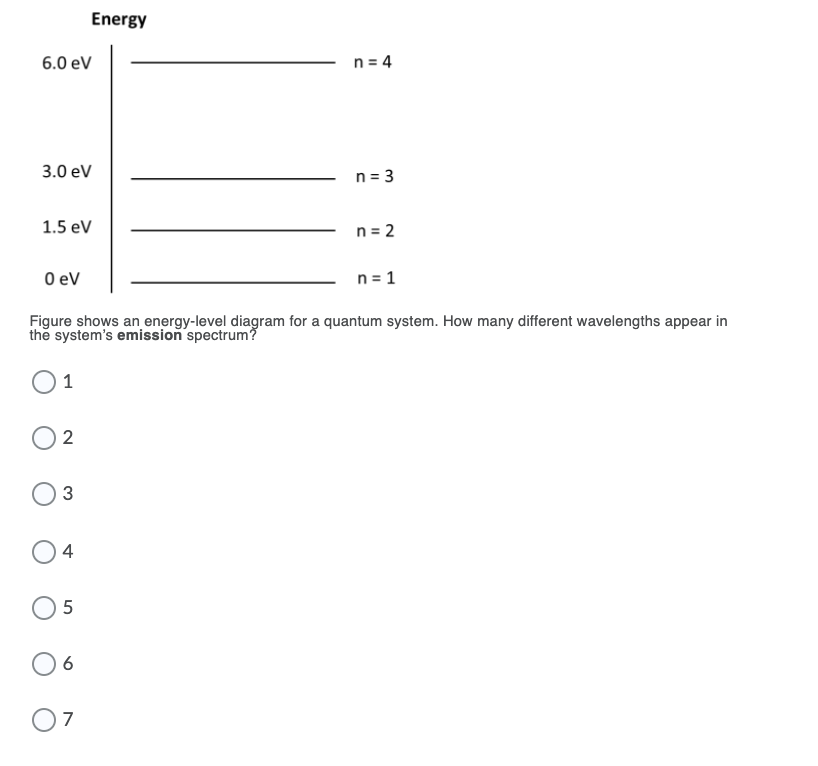 Solved Energy 6.0 eV n = 4 3.0 eV n=3 1.5 eV n = 2 O eV n ...