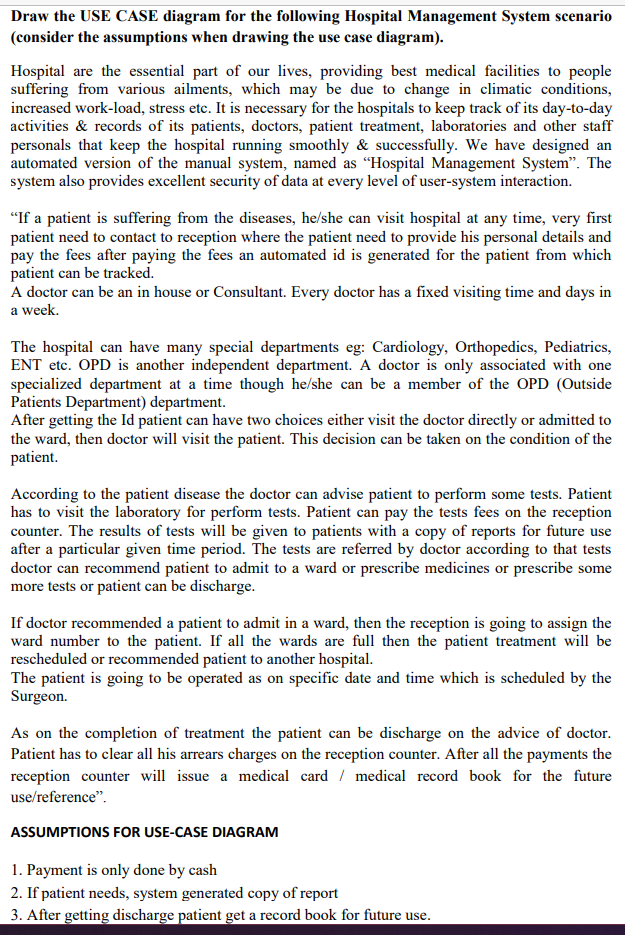 Use Case Diagram – Hospital Management System Project. The use case diagram are usually referred to as behavior diagram used to describe the actions of all user in a system. All user describe in use case are actors and the functionality as action of system. The Use case diagram is a collection of diagram and text together that make action on ...