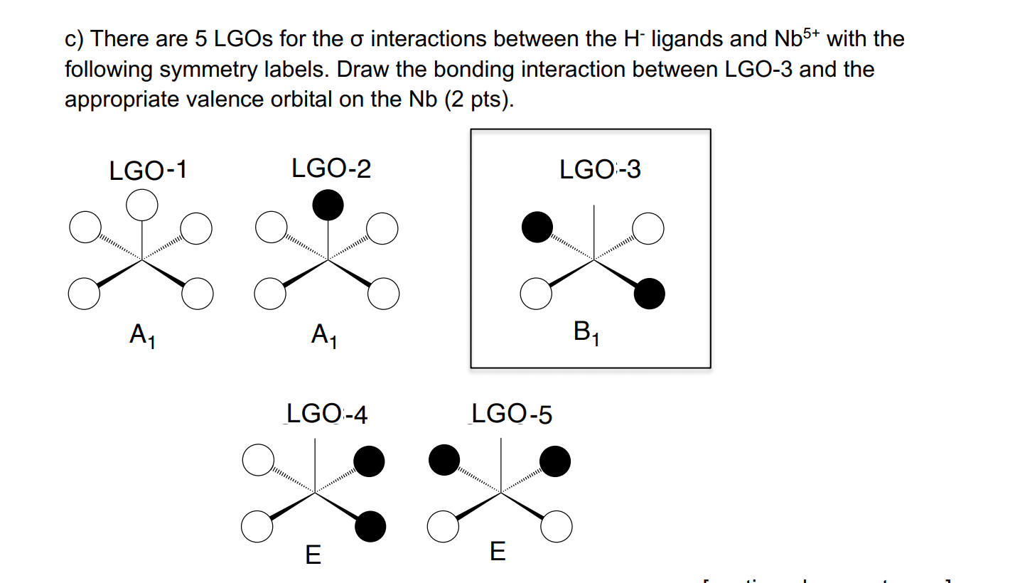 inorganic chemistry - dsp3 and sp3d hybridization — what is the... MO theory is discussed at the general chemistry level but only for diatomic molecules and ions from the second period, again because more atoms or higher periods makes it more complicated and it's just meant to give them a taste of what it is. Square pyramidal molecular geometry - Wikiwand In molecular geometry, square pyramidal geometry describes the shape of certain compounds with the formula ML5 where L is a ligand. If the ligand atoms were connected, the resulting shape would be that of a pyramid with a square base. The point group symmetry involved is of type C4v. PDF Microsoft Word - Miessler-Fischer-Tarr5e_SM_Ch_05_CM.doc Be Orbitals with Matching Symmetry: MO Diagram 5.33 A square pyramidal molecule has the reducible representation G = E + 2A1 + B1. Solved: 4. Construct An MO Diagram For The Square... | Chegg.com Transcribed Image Text from this Question. 4. Construct an MO diagram for the square pyramidal AsHs, which has Cav symmetry Sketch the group or SAO orbitals for the terminal hydrogens and assign symmetry labels. For each of the group orbitals, determine which valence s and p orbitals of the...