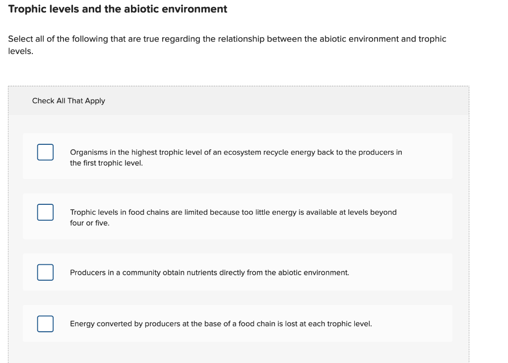 Which of the following trophic levels represents a primary producer in an ... Which of the following statements is best supported by the diagram of the ...