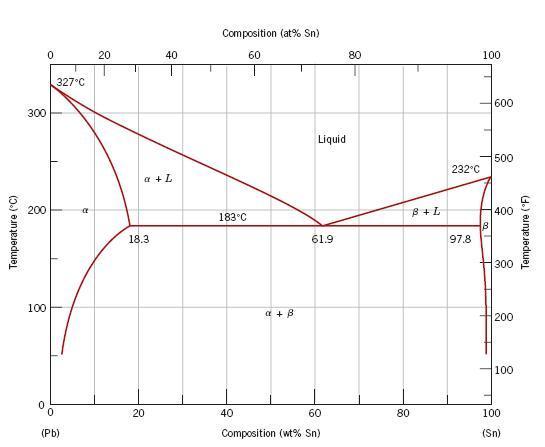 Binary Phase Diagram - an overview | ScienceDirect Topics Binary phase diagrams usually contain an assortment of single-phase materials known as solid solutions and these have already been introduced in The terminal α and β phases in the Pb-Sn diagram ( Fig. 5-16 ) are examples. They are both substitutional solid solutions and display the limited... Phase Diagrams Chapter ppt video online download 27 Pb-Sn Phase Diagram c10f08 Liquidus Solidus Solidus Solidus Solvus. 28 Solidification of Eutectic Mixtures Mixtures of some metals, such as copper 40 Intermetallic Compounds 19 wt% Mg-81 wt% Pb Mg2Pb Note: intermetallic compounds exist as a line on the diagram - not a phase region.