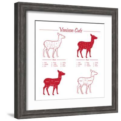 Butcher chart cuts of venison. Printable deer meat cut ... Butcher chart: cuts of venison. Deer meat cut diagram, restaurant decor design. Butchers printable gift graphic. Hunters meat cut chart that you can use to dress up your kitchen, clothing's, pillows, cards, stickers, web design, wall decor, create butchers gift, make hunters tumbler or mug with waterslide transfer, for sublimation and scrapbooking projects.