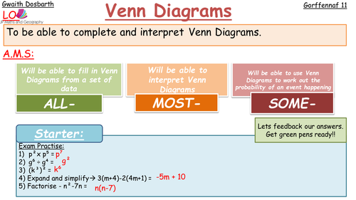Venn diagrams - Probability - WJEC - GCSE Maths Revision... Learn how to calculate and apply probability to solve problems in a variety of contexts. Applications and methods include two-way tables and Venn diagrams. In the previous section, we used the notation P(A and B) which is called A intersection B. The outcomes which satisfy both event A and...