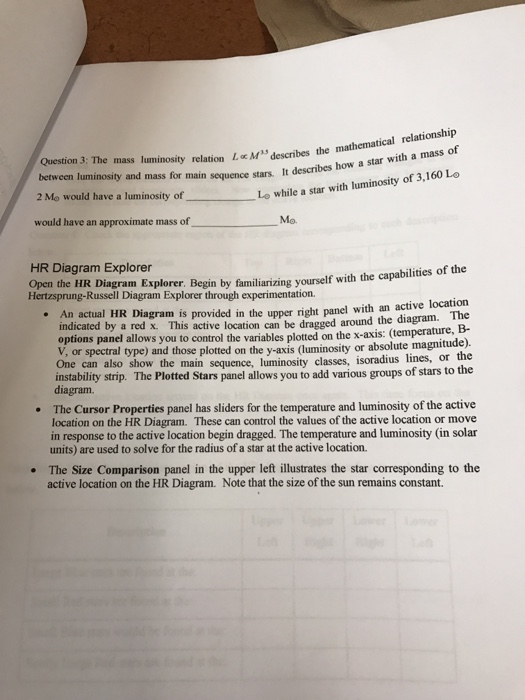 HR Diagram - Student Guide - Yeni elektronik kitap ve belge... HR Diagram - Student Guide en yeni dosyaları oku ve indir. Question 15: The HR Diagram is a log-log plot of the solar units equation L=R2T4. Use the boxed equations to argue that isoradius lines on the HR Diagram must be parallel lines.