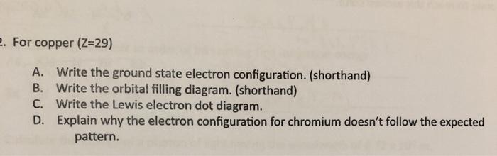 Why is it difficult to draw an atom of copper? - Brainly.com In order to write the Copper electron configuration we first need to know the number of electrons for the Cu atom (there are 29 electrons). Once we have the configuration for Cu, the ions are simple. ... Explain what is wrong with the following Lewis Dot diagram? if the mixture is 130.0 grams what is the mass of the water 1. 30.0 g 2. 70.0 g 3 ...