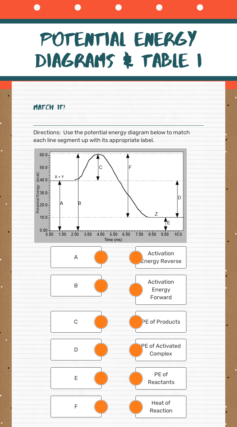 Potential Energy Diagram Worksheet Answers - kidsworksheetfun The overall difference in potential energy between the products and the reactants. Potential energy diagram displaying top 8 worksheets found for this concept. Which letter indicates the potential energy of the activated complex. Draw an energy diagram for a reaction.